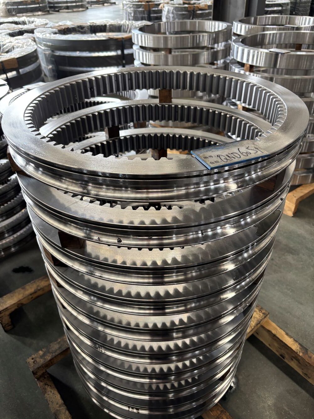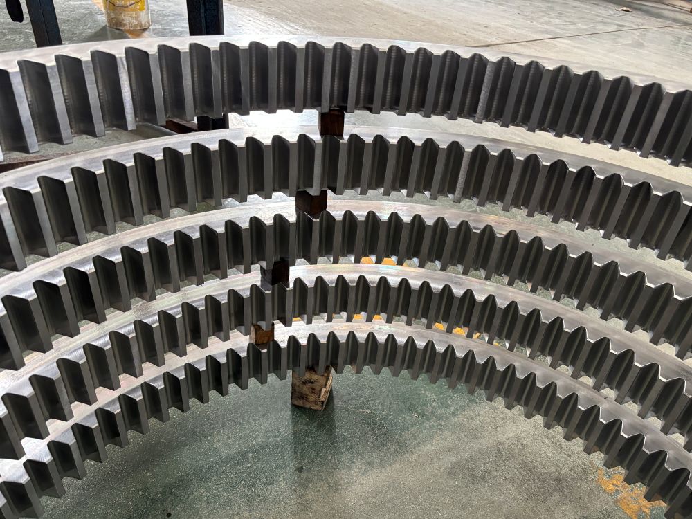 Los dientes se encuentran en la superficie interior y engranan con un piñón o engranaje planetario.Estructura de gran diámetro