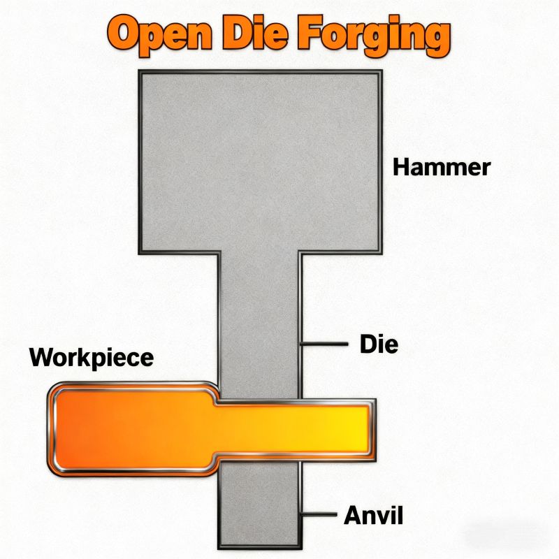 I tipi più comuni includono forgiatura a stampo aperto, forgiatura a stampo chiusoe forgiatura a rovesciociascuno progettato per geometrie e requisiti di carico diversi. Il processo di forgiatura dei metalli garantisce un flusso direzionale del grano che segue la forma del pezzo, fornendo una resistenza alla fatica e un’integrità strutturale superiori.